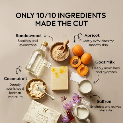 Indulge in the timeless luxury of Sandalwood & Saffron Luxury Soap, crafted to elevate your daily bathing ritual into a radiant skincare experience. Infused with the richness of Sandalwood and the golden glow of Saffron, this soap features an effective anti-tan formula that helps reduce tan while restoring your skin’s natural tone. Enriched with Goat Milk, Shea Butter, and Apricot Powder, it gently exfoliates, nourishes, and revitalizes the skin, leaving it visibly brighter, smoother, and luminous after every wash. Its warm, soothing aroma creates a calming, spa-like ambience for a truly indulgent cleanse.